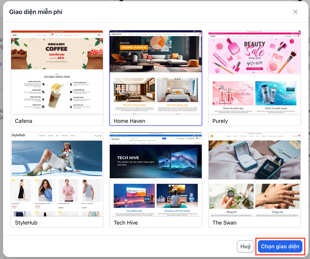 2.3. Hướng dẫn chọn giao diện website sẵn có của Haravan