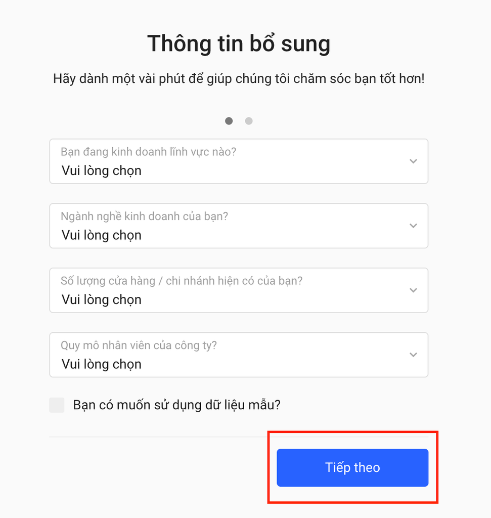 Điền vào “Thông tin bổ sung” để tiếp tục quá trình tạo website miễn phí dùng thử 14 ngày.