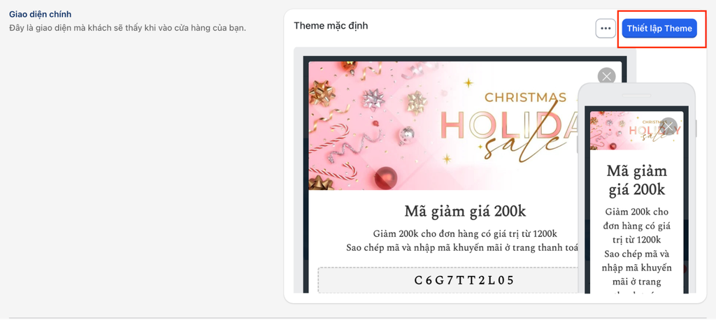 Bước 2: Để tùy chỉnh giao diện cửa hàng website của bạn, tại mục “Giao diện chính”, chọn “Thiết lập Theme”.