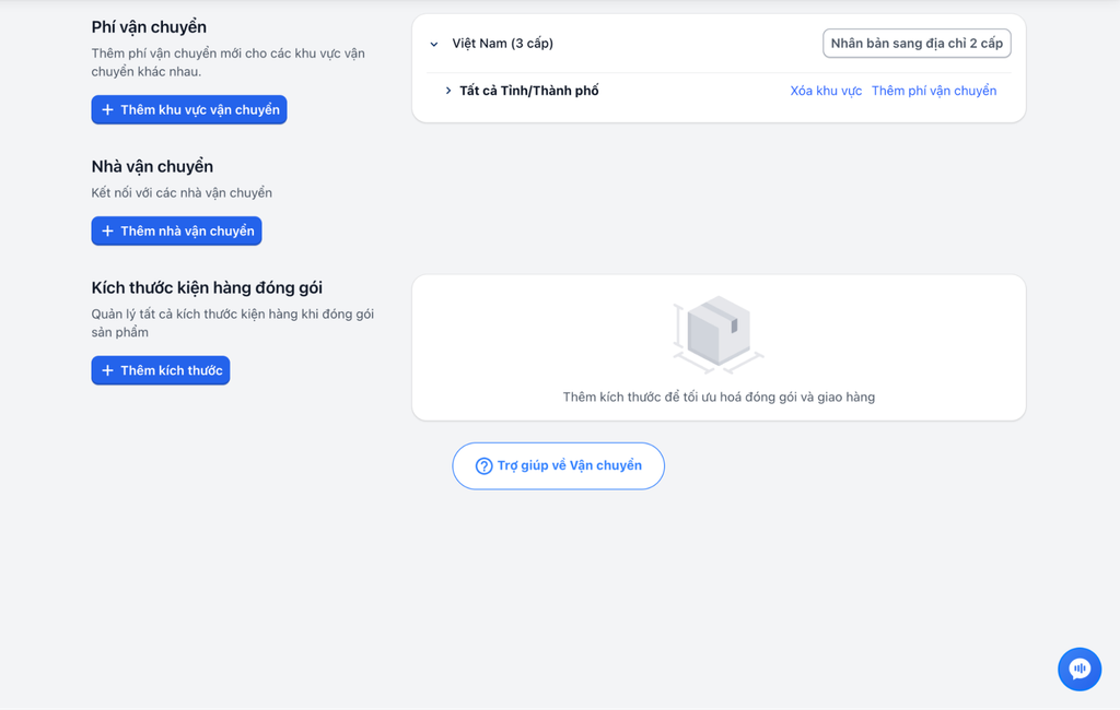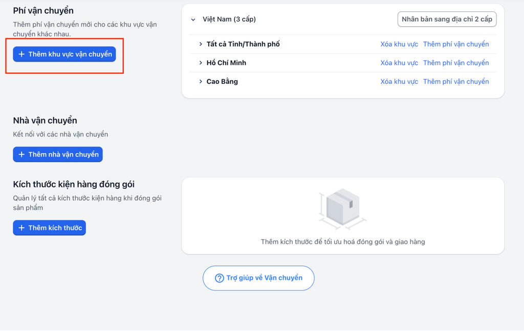 Sau khi vào trang quản lý vận chuyển, bạn cần thêm 3 trường thông tin sau: