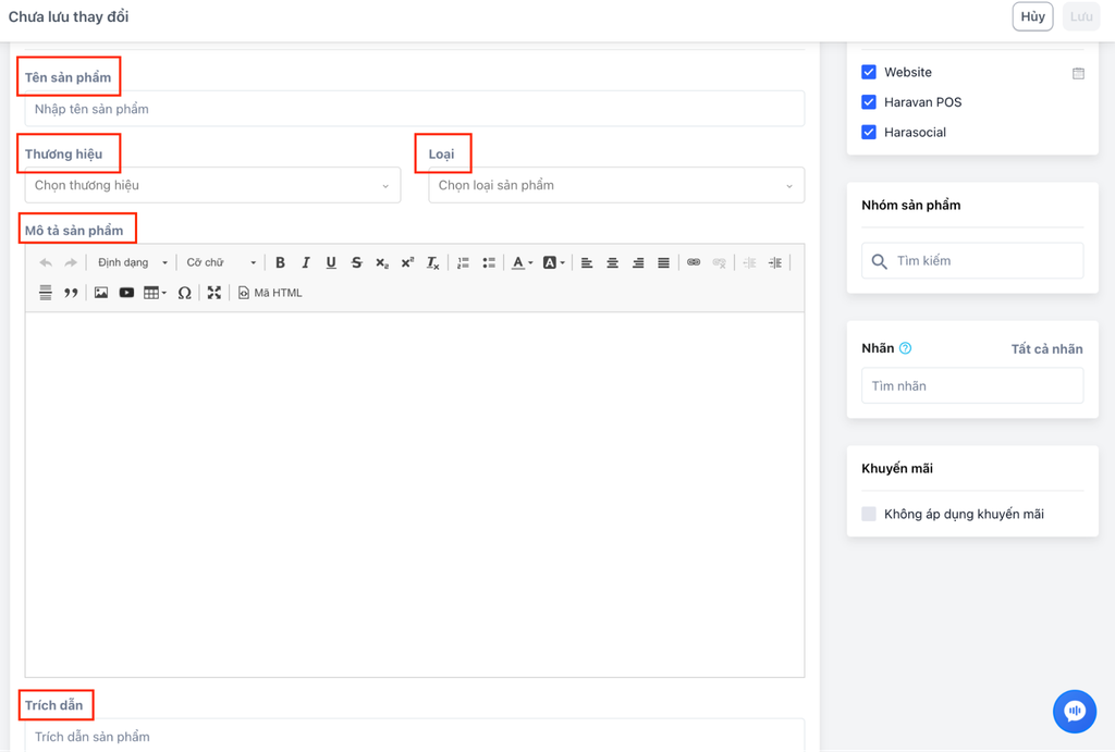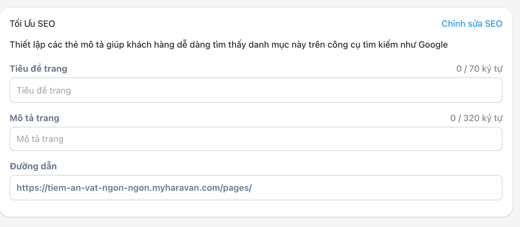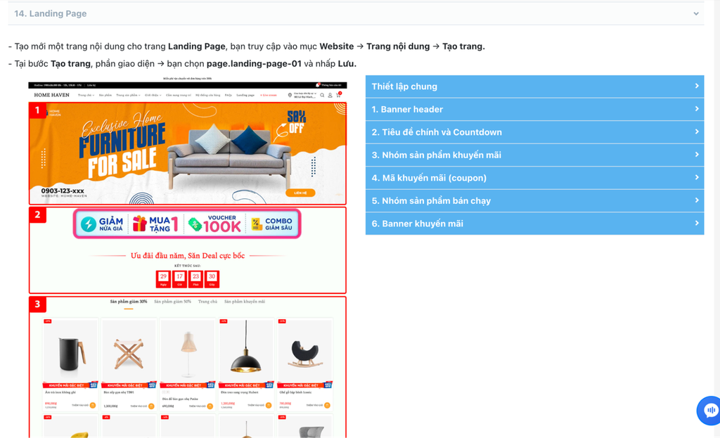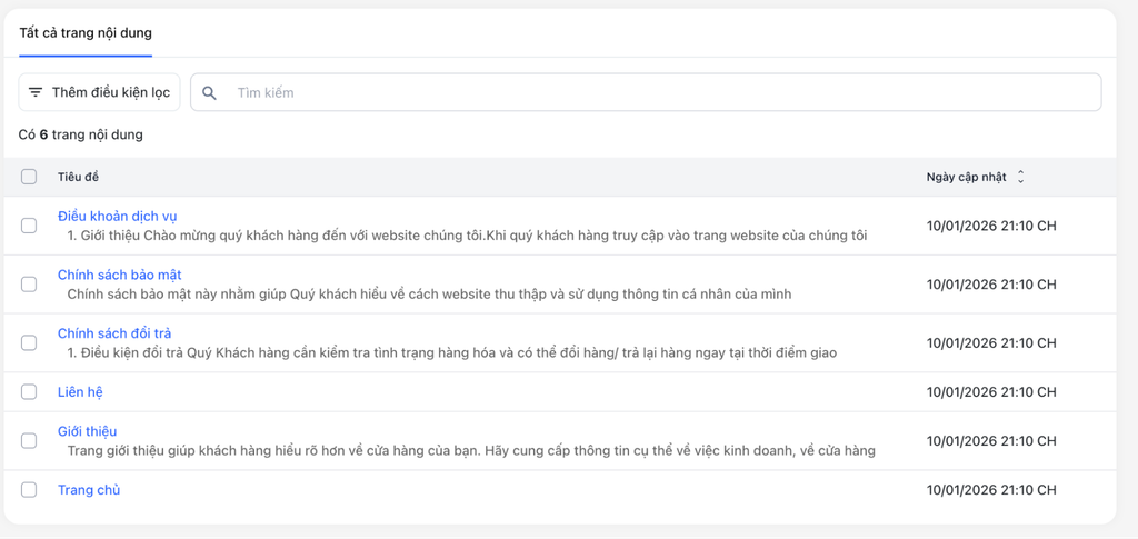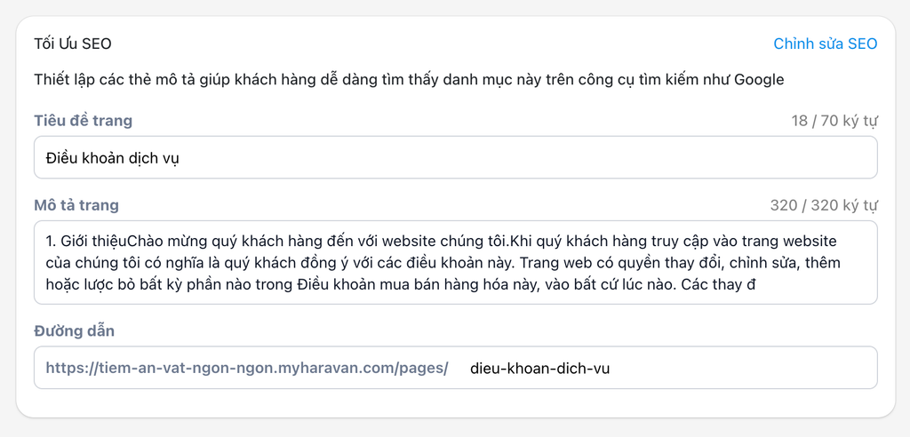 Haravan cung cấp trang nội dung mẫu gợi ý cho doanh nghiệp.