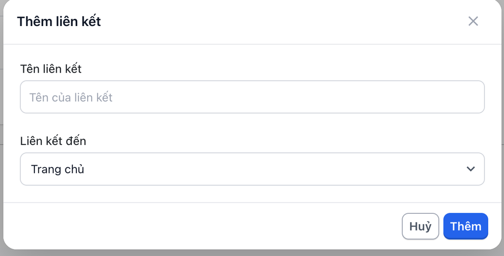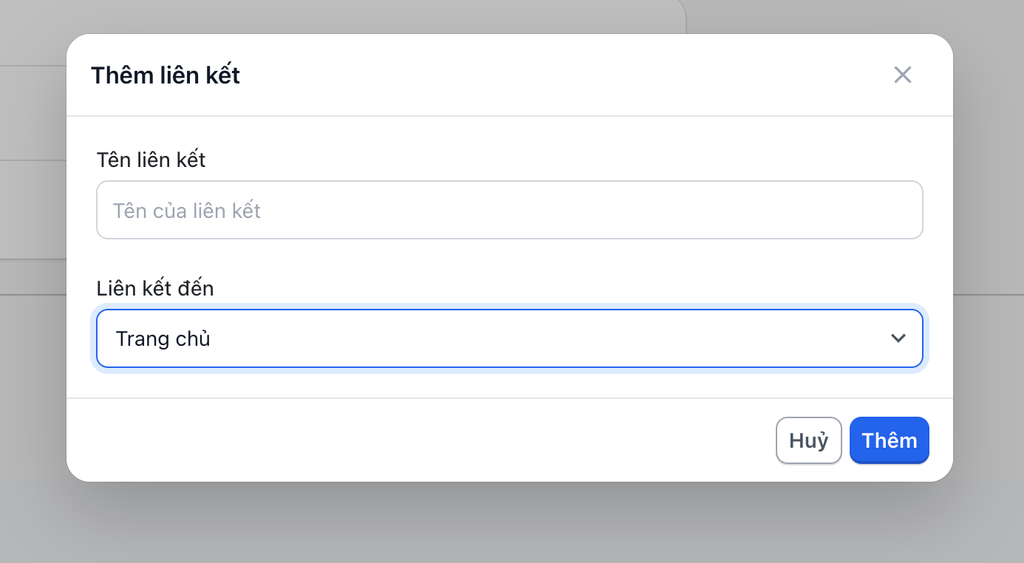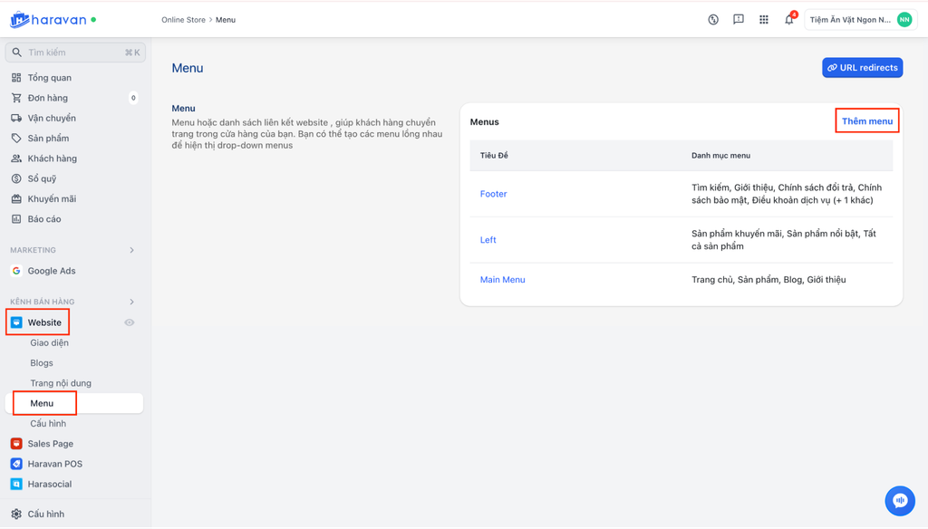 Trong đó để thêm liên kết menu bạn nhập “Tên của liên kết” & “Liên kết đến” → “Thêm” để hoàn tất.