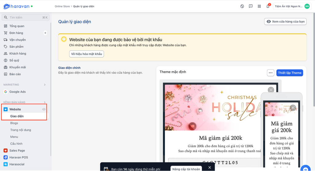 Ngoài ra, bạn có thể chọn nhiều giao diện có tính phí khác tại mục “Kho giao diện Haravan”.