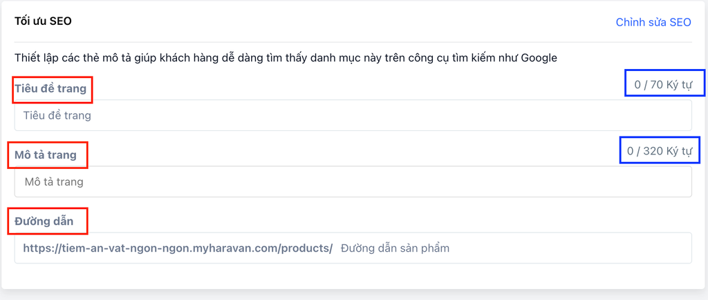 Để danh mục hiển thị trên tìm kiếm, bạn cần tối ưu SEO cho trang sản phẩm.