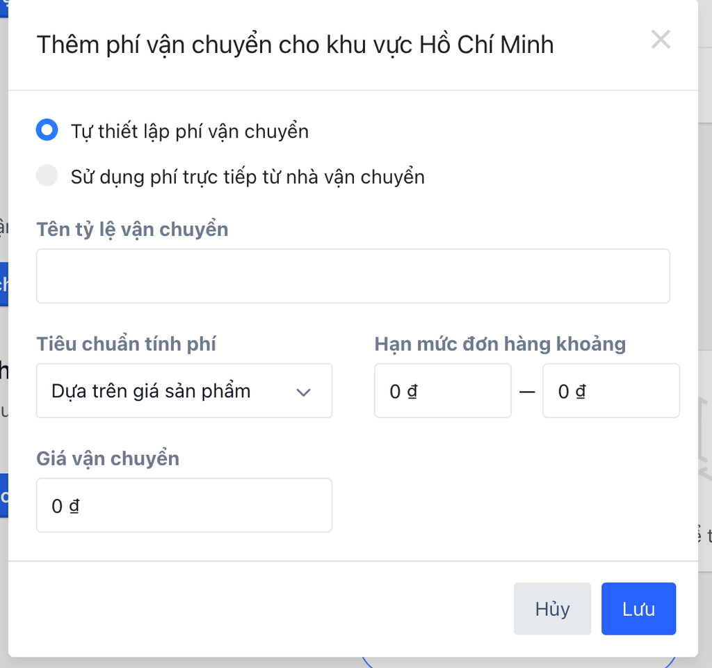 - Cách 1: Tự thiết lập phí vận chuyển.