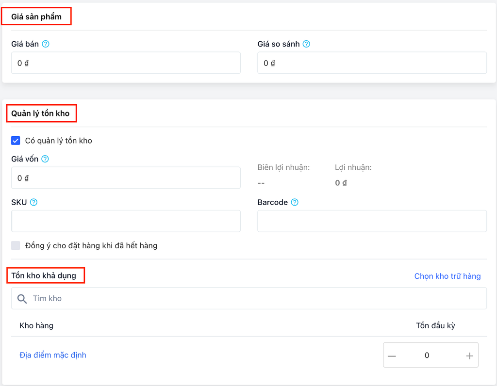 Chọn “Tạo sản phẩm” để nhập sản phẩm thủ công.