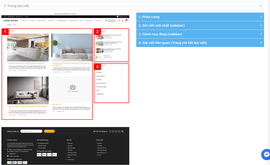 7. Trang bài viết: Mục này cho bạn chỉnh sửa phân trang, bài viết mới nhất, danh mục blog, bài viết liên quan.
