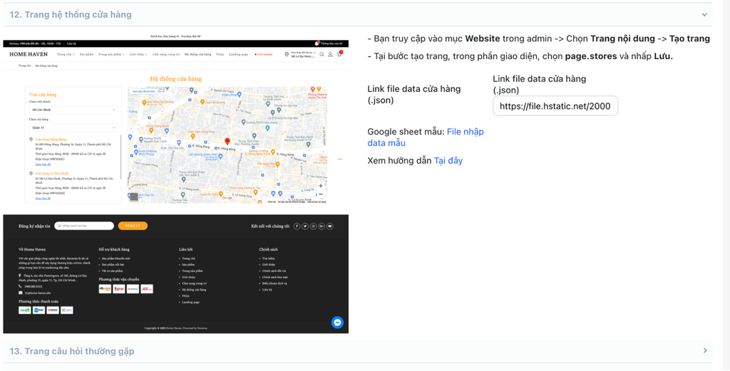 12. Trang hệ thống cửa hàng: Dành cho doanh nghiệp có nhiều chi nhánh, tại mục này giúp bạn thiết lập vị trí các chi nhánh của mình.