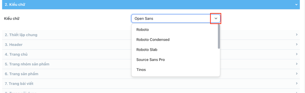 Đối với việc chọn font chữ cho cửa hàng, bạn chọn mũi tên đi xuống và lướt chọn font chữ mong muốn.