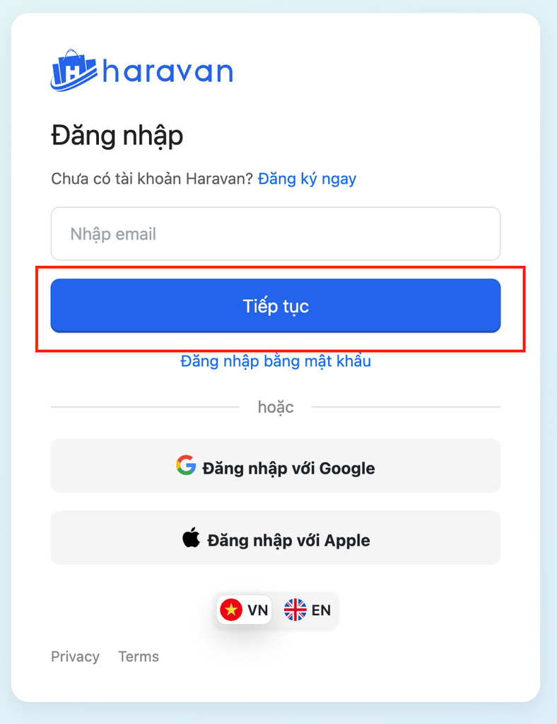 1.4. Bước 4: Đăng nhập vào tài khoản cửa hàng Haravan của bạn
