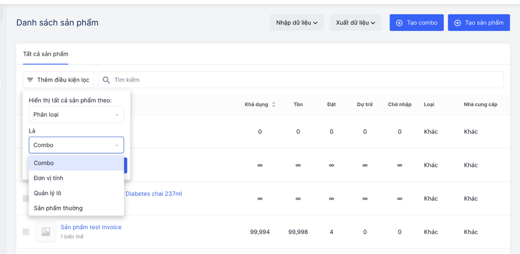 Haravan bổ sung các điều kiện giúp lọc sản phẩm theo các phân loại sản phẩm như sản phẩm Combo, Đơn vị tính, Quản lý lô và Sản phẩm thường. Việc cập nhật này giúp người dùng dễ dàng nhận diện và xử lý từng loại sản phẩm một cách rõ ràng và tối ưu quy trình vận hành. Với bộ lọc chi tiết hơn, doanh nghiệp có thể kiểm soát dữ liệu chính xác và hiệu quả hơn trong mọi tình huống kinh doanh.