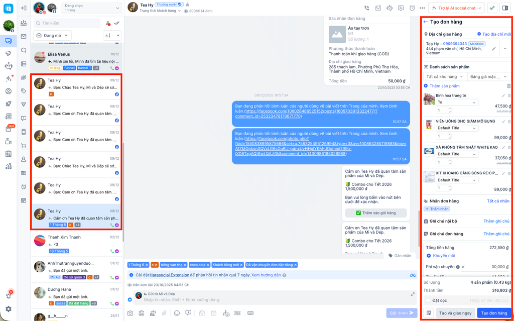 Cập nhật: Giữ nguyên hiện trạng nội dung và trạng thái ở tab "Tạo đơn hàng" khi chuyển đổi giữa các hội thoại cùng một khách hàng.