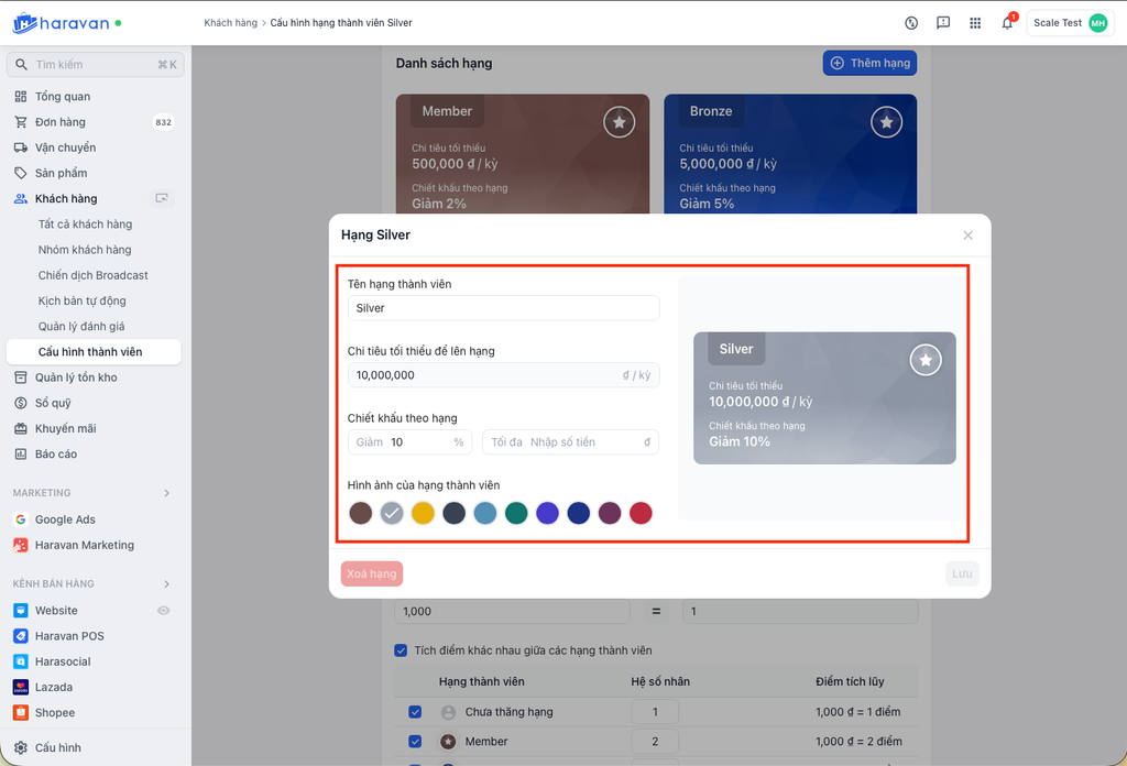 Cập nhật: Cho phép chỉnh sửa trực tiếp các thông tin như chiết khấu, tên hạng thành viên và màu thẻ mà không cần tắt cấu hình hạng thành viên.