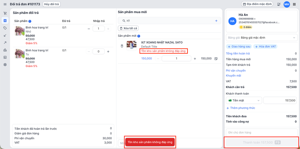 Trước đây: Nếu sản phẩm mua mới không đủ điều kiện tồn khi thì hệ thống vẫn cho phép đổi trả, nhưng nhà bán hàng không tạo được đơn đổi, chỉ tạo được đơn trả.